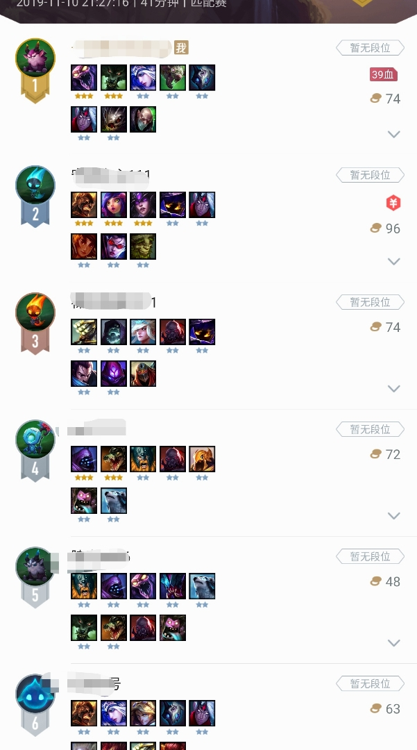 今天运气好,拿了个水晶拉克丝,然后两冰拳狂徒蝎子,能抗8个人围殴,不知道换成反甲这8个人会不会暴毙,多重分身劫都打不过我,阵容是四水晶三掠食三剧毒两钢铁两游侠
