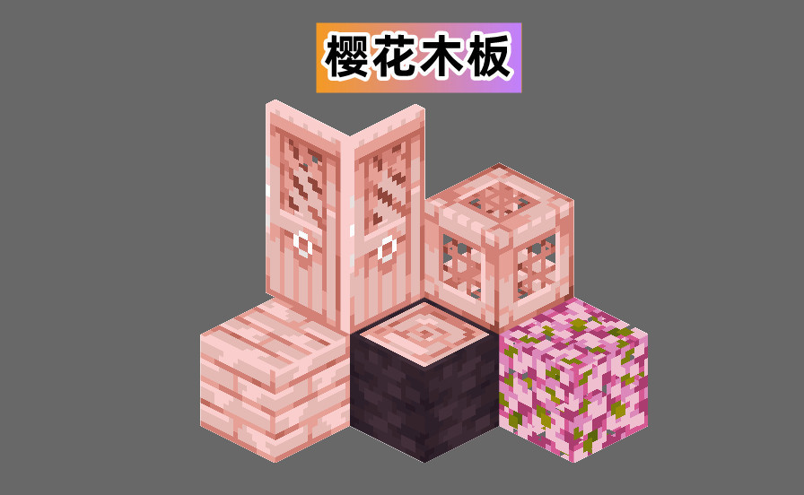 ?樱花树林(Cherry Grove)在1.20中被作为山地繁茂群系的变种加入到了《我的世界》,自此开启了Minecraft粉红色的时代,粉红的木头让整个世界都拥有了粉红色的色调,包括粉红船、粉红木门等等。