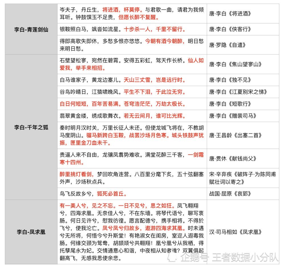 附上李白诗词类台词表格版: