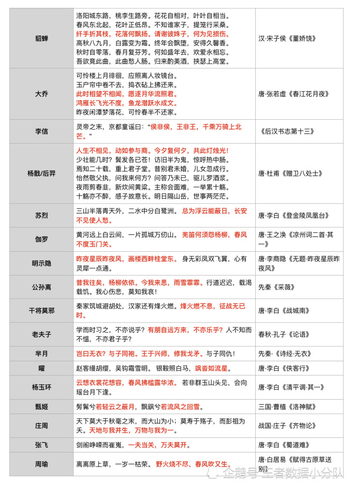 附上上官婉儿诗词类台词表格版: