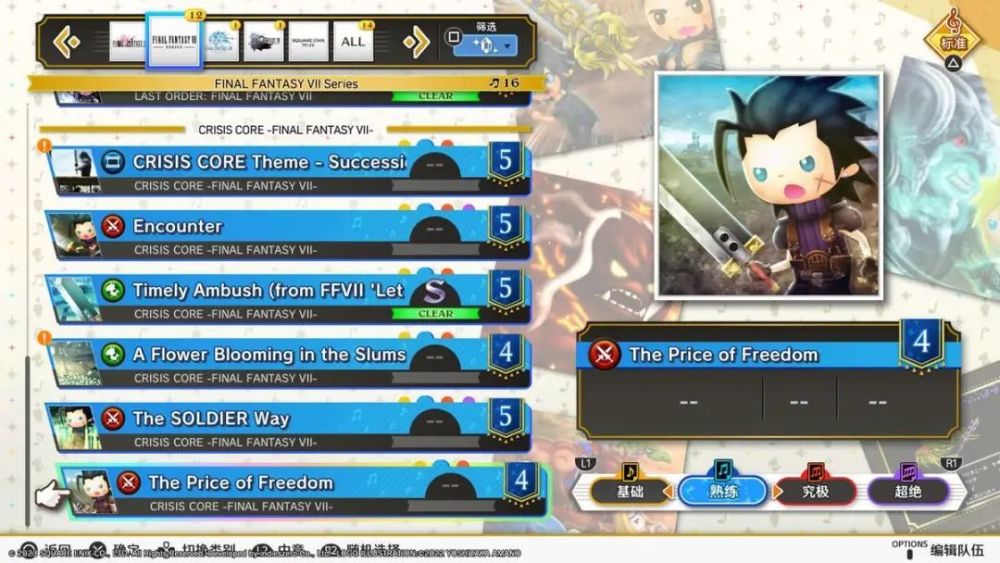 《最终幻想 节奏剧场/Theatrhythm: Final Bar Line》是由SE出品的一款节奏音乐游戏,为《最终幻想》音乐衍生系列中的最新作品,于2023年2月16日在PS4和任天堂SWITCH平台上推出了中文版。对于最终幻想系列个人接触的不多,也就看过动画CG电影和前段时间玩过的核心危机重置版,虽说不是最终幻想系列的粉丝,不过作为一名音乐游戏爱好者,音游肯定是一部都没有错过,今次也选择了在PS上游玩了这款《最终幻想》系列的音乐衍生游戏。