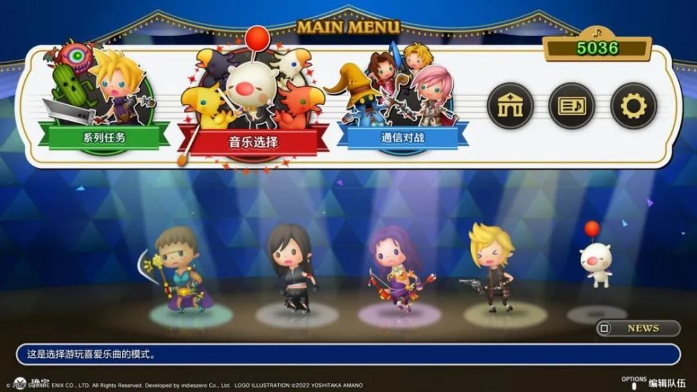 游戏模式上《最终幻想 节奏剧场》提供了系列任务模式和线上对战模式,线上对战模式需要玩家完成一局系列任务模式后才能解锁。《最终幻想 节奏剧场》总共收录了FF本传系列作品、重制作品、外传作品以及原声带曲目,收录作品的数量共达46部,本体收录的曲目数量总共有385首,再加上未来的DLC内容达到了502首,数量上确实是量大管饱。不过曲目的解锁方式就比较肝了,玩家需要在系列任务模式中逐个关卡完成后才能解锁,并不是一上来就能全部玩到,所以还得耐心慢慢推进才行。