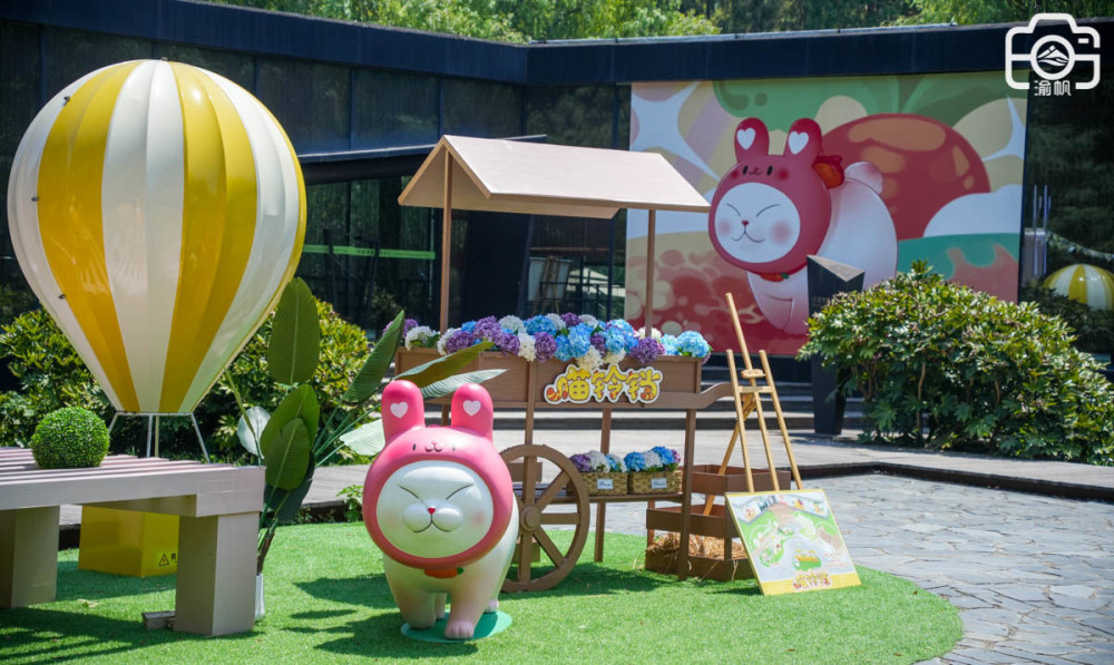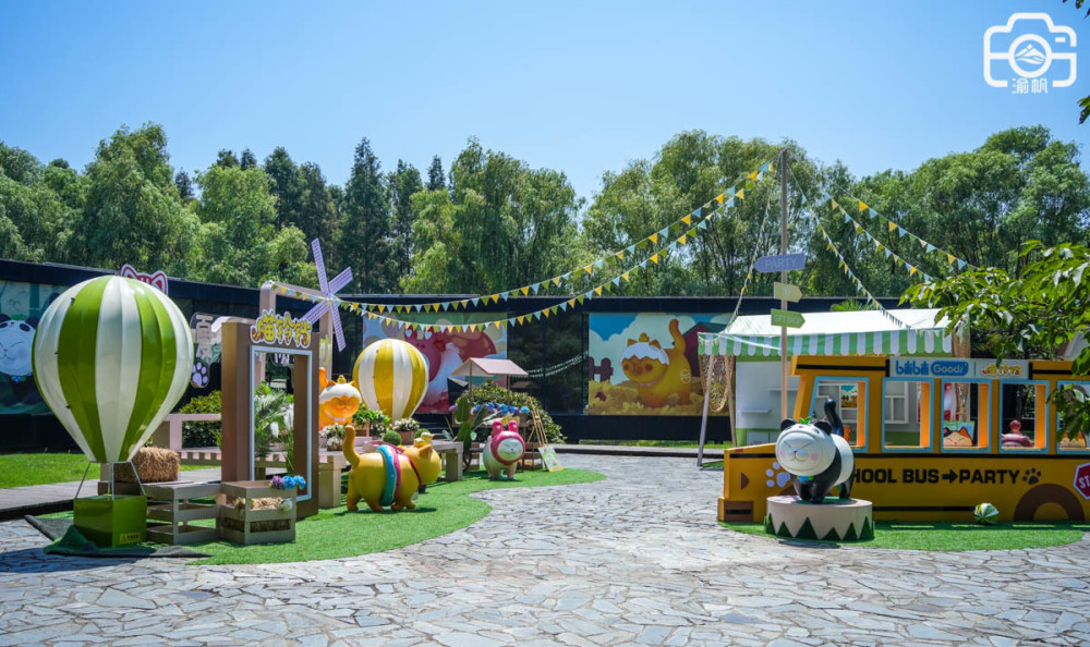 在自然课堂的边上,我们发现一个临时搭建的喵铃铛夏日动物派动,走近了解,得知它是最近特别火的IP,里面展示和销售各式各样的喵铃铛盲盒,到了这里不仅可以购买盲盒,还可以与喵喵同框拍照、DIY互动体验,在这里寻找一份童趣快乐。