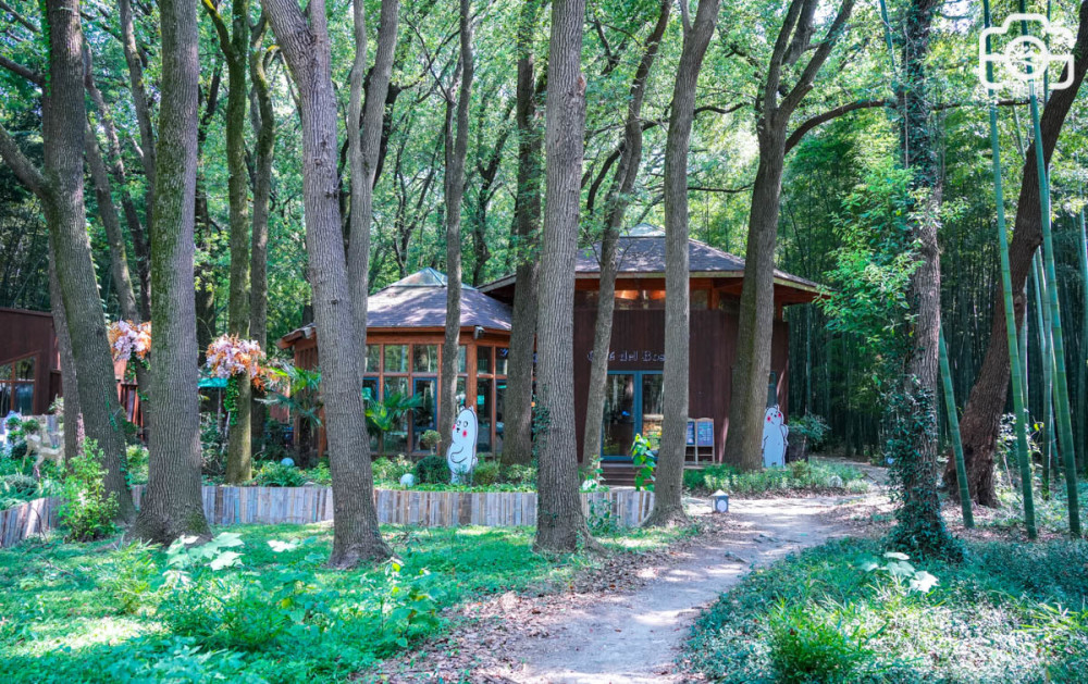 顾名思义,丛林咖啡馆自然位于一片茂盛的丛林之中,进入其中,身心顿觉凉爽,咖啡馆四周被古树与竹林环绕,建筑大量采用原木设计,与周边的环境融为一体,远远看去,如同童话世界一般。