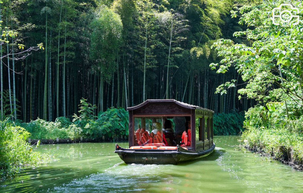 古色古香的游船,带着我们在纵横交错的河道中穿行,时而是参天的香樟林,时而是茂盛的毛竹海,时而是开阔的荷塘,时而引来蛙声阵阵,时而惊起飞鸟腾空,在游船中,眼前景致变换,呼吸的是高含量的负氧离子,感受的是惬意的假期体验。
