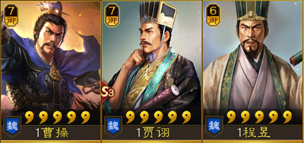 这篇咱们介绍一个非常辉煌的阵容:魏法骑(曹操、贾诩、程昱)。其实在这个阵容之上,还有一个延伸出来的更强阵容:魏法盾(曹操、贾诩、郝昭)。这两个阵容的思路基本一致,并且都是三战PVP中首屈一指的阵容代表。