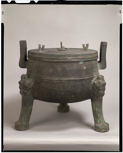 蟠螭文鼎(楚王鼎),1933年出土于安徽寿县朱家集李三孤堆楚幽王墓,是迄今发现的唯一可以确认的楚国国王墓。出土文物近4000余件,由于器物时代明确且文化面貌清晰,遂成为楚国晚期器物断代的标准器。东京国立博物馆的这尊鼎形制雄伟,堪称楚国重器,于抗战期间被劫掠至日本。