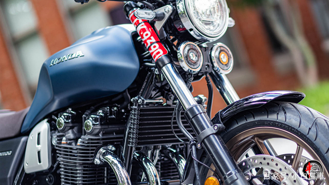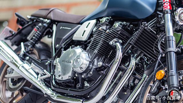 极具视觉焦点的四缸引擎,四排双出设计。给这台公升级复古机车带来了不一样的力量感,直列四缸风油冷1100 cc排量,最大马力89.7匹,最大功率66kw/7500,最大扭矩91Nm/5500,马力虽未过百,但输出的更多是情怀。