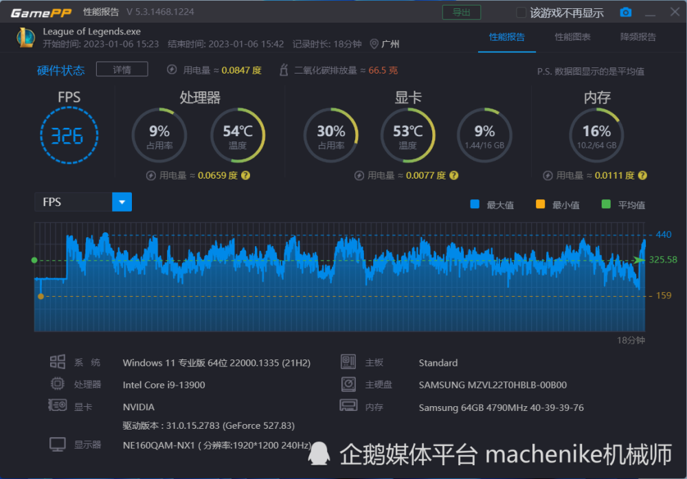 《英雄联盟》,最高画质设定,平均帧数326帧,各位召唤师峡谷的玩家们,请问这个帧数你们满意吗?