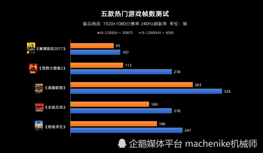 下面通过对《赛博朋克2077》、《英雄联盟》、《荒野大镖客2》、《绝地求生大逃杀》、《永劫无间》、5款热门游戏进行测试,所有游戏能开光线追踪和DLSS都会开。机械师曙光16Pro水冷版游戏表现如下: