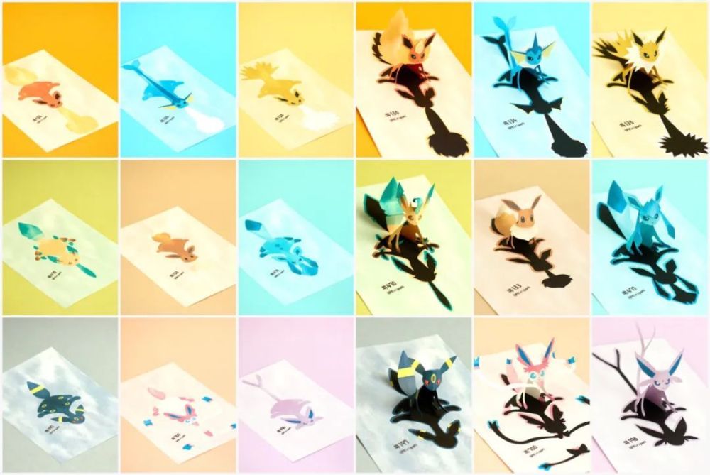剪纸、折纸艺术家「PKirigami」分享了自己制作的伊布家族立体剪纸,惟妙惟肖呆萌生动~