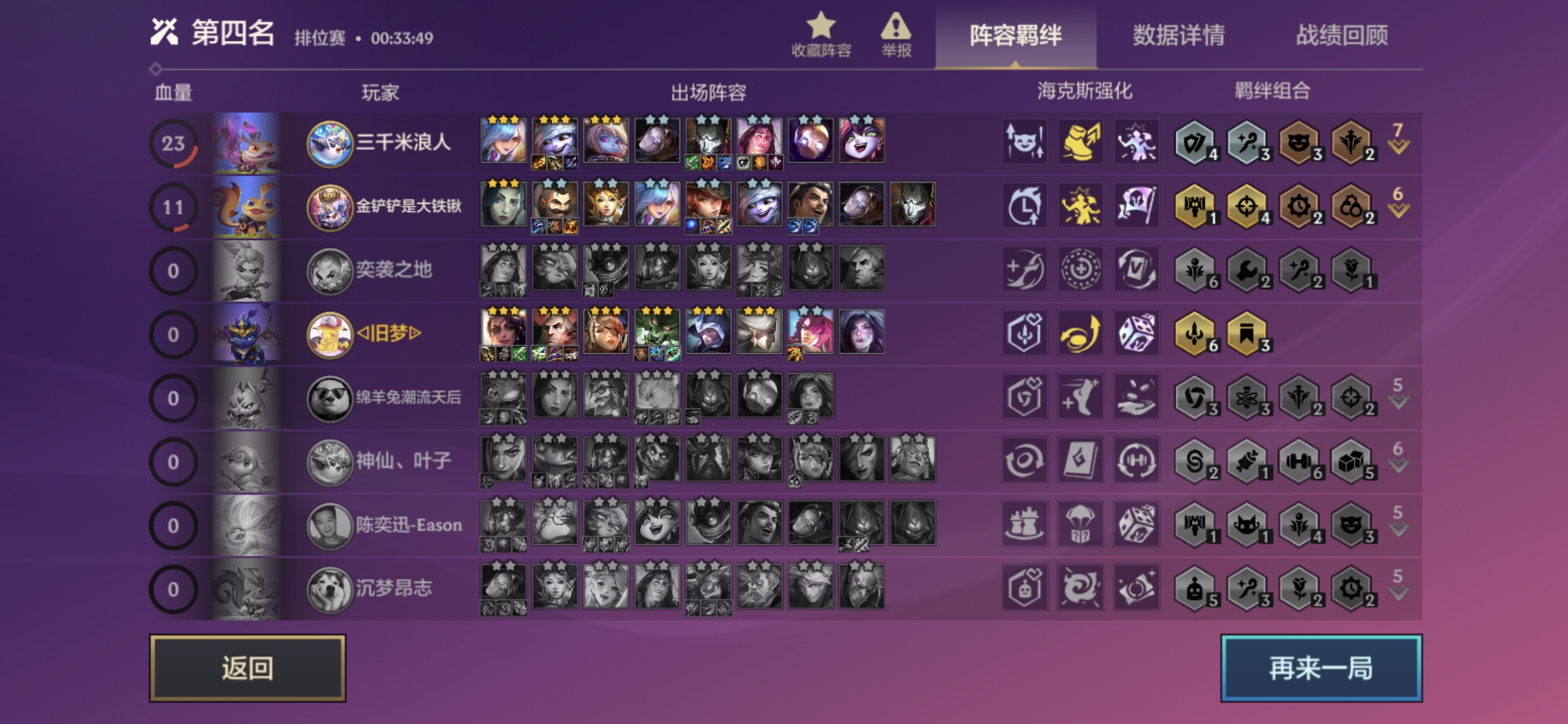 别提了 这种简单粗暴的阵容都像掺和一手,我第一个海克斯帝国转,打野怪掉个纹章,又拿个挑战者转,妥妥帝国挑战者转,好家伙了,四家人都在玩,海克斯和帝国挑战者毫无关系的也要玩,全都在抢沙弥拉,没三星沙弥拉就是弟弟,被一个约德尔偷了菜