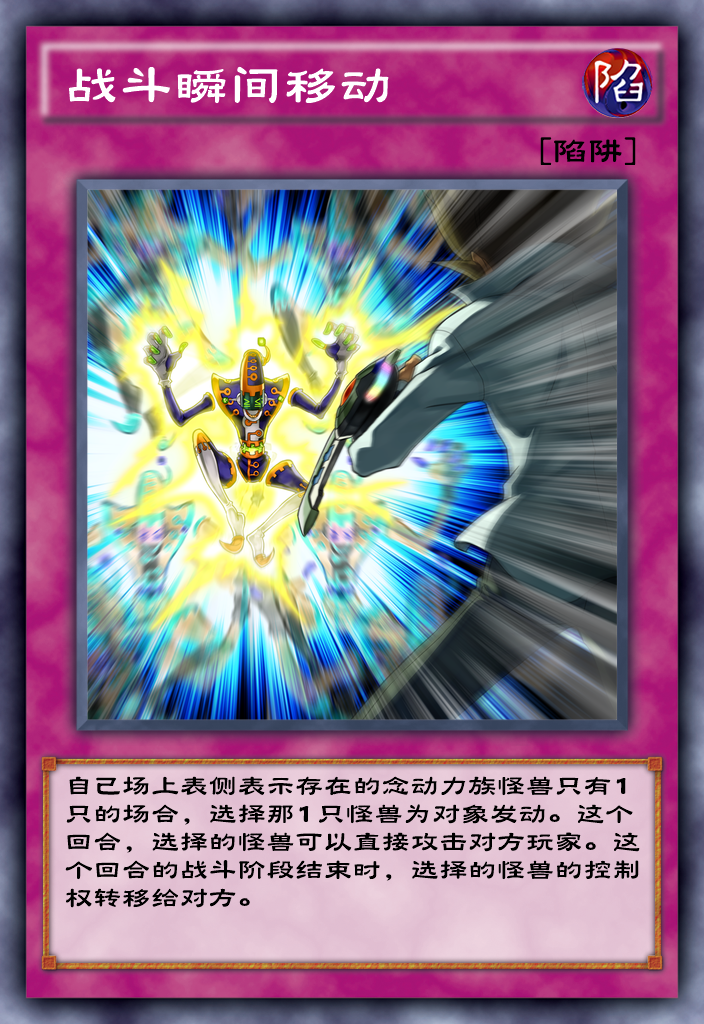 最后这张战斗瞬间移动依旧是念动力本家卡牌,这张卡可以让自己场上的一只念动力族怪兽直接攻击对方玩家,虽然回合结束控制权会转移给对手,不过这张卡大多都会配合敌人控制器或者是各类带有cost手段的卡牌来使用,后续应该会有一些比较阴间的套路诞生。