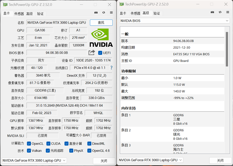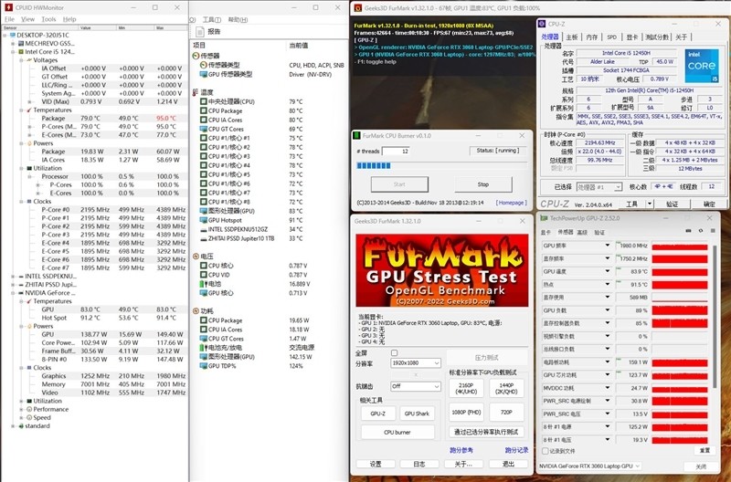 RTX 3060 Laptop显卡频率在1252MHz,温度最高为83℃,功耗就达到了140W。
