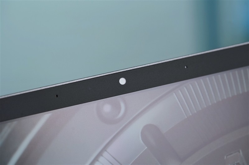 屏幕上方边框的中央位置,配有摄像头和麦克风拾音孔。