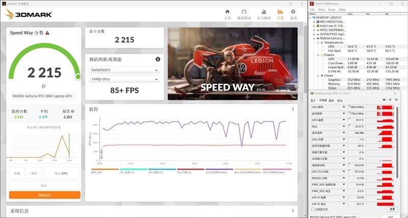 在3DMark的Speed Way测试中,RTX 3060 Laptop显卡取得了2215的总成绩。