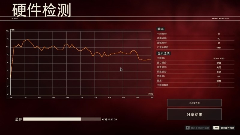 在《战争机器5》1080P+预设超高画质,平均帧数为87.1 FPS。