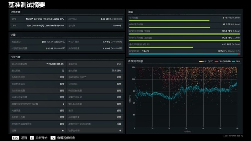 混合架构的12代酷睿i5-12450H配合满血的RTX 3060 Laptop,在日常、游戏体验上并不存在性能瓶颈,显卡也能发挥出最大水平,毕竟Intel+NVIDIA这俩“绝佳搭档”,也是玩家最喜欢的组合。