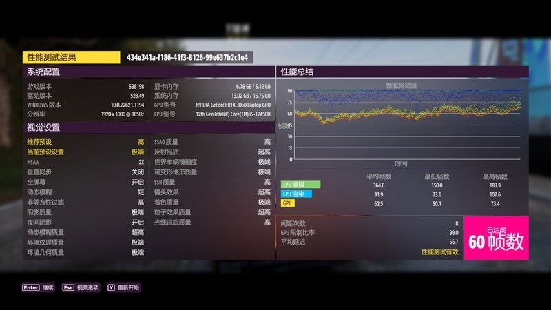 在《极限竞速 地平线5》1080P+预设极端画质下,平均帧数为60 FPS。