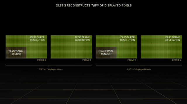 作为Ada Lovelace架构的杀手锏,全新的DLSS 3在原有的DLSS超分辨率的基础上,添加了帧生成技术,以生成全新的帧,而不像原来只能生成像素。