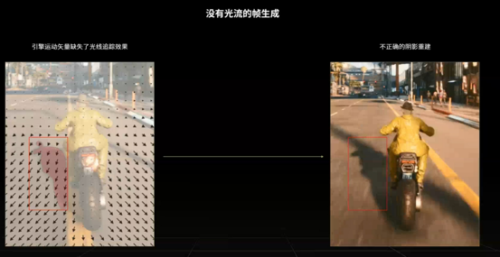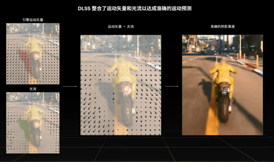 为了让插帧更加真实,DLSS 3同时还引入了New Optical Flow Accelerator(光流加速器),他能准确计算连续2帧的光影以及粒子流动方向,速度等信息,在通过计算运动矢量和光流来蝴蝶更为精准的阴影重建效果。