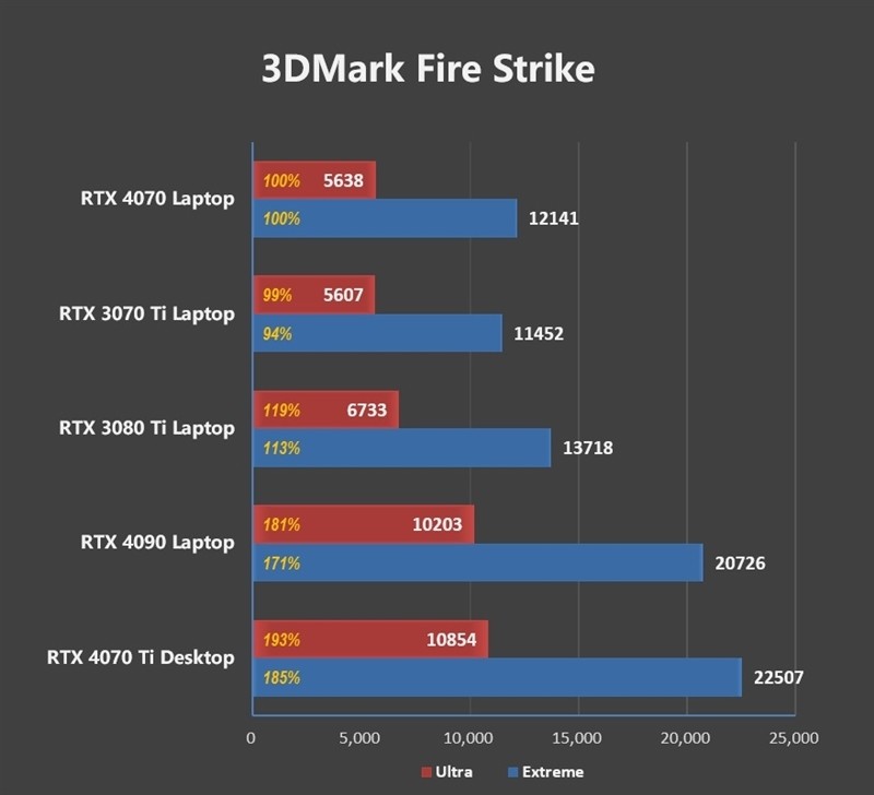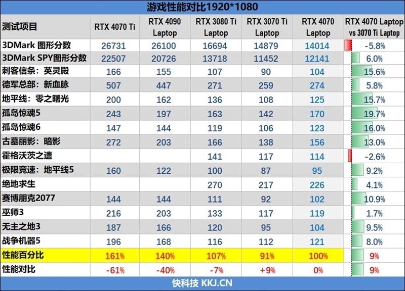 考虑到RTX 3070 Ti Laptop要比RTX 3070 Laptop强了10%左右,因此可以推测,RTX 4070 Laptop的性能要比RTX 3070 Laptop强了20%左右。