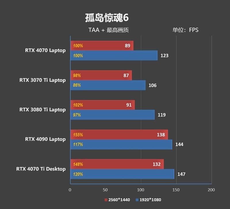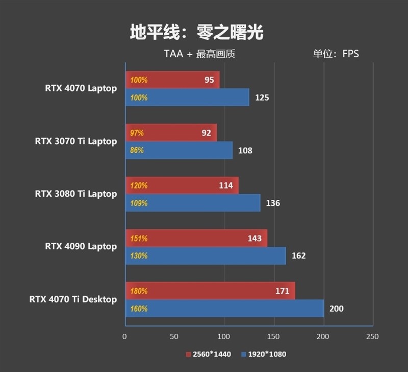 也就是说,RTX 4070 Laptop是一块能够畅玩2K分辨率的游戏显卡。