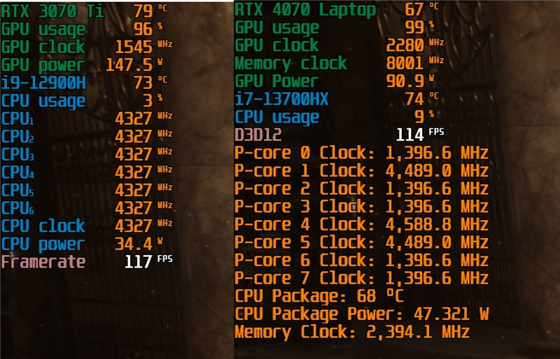 以下我们将对比2K分辨率下,RTX 4070 Laptop与RTX 3070 Laptop的功耗,分辨率为2K。
