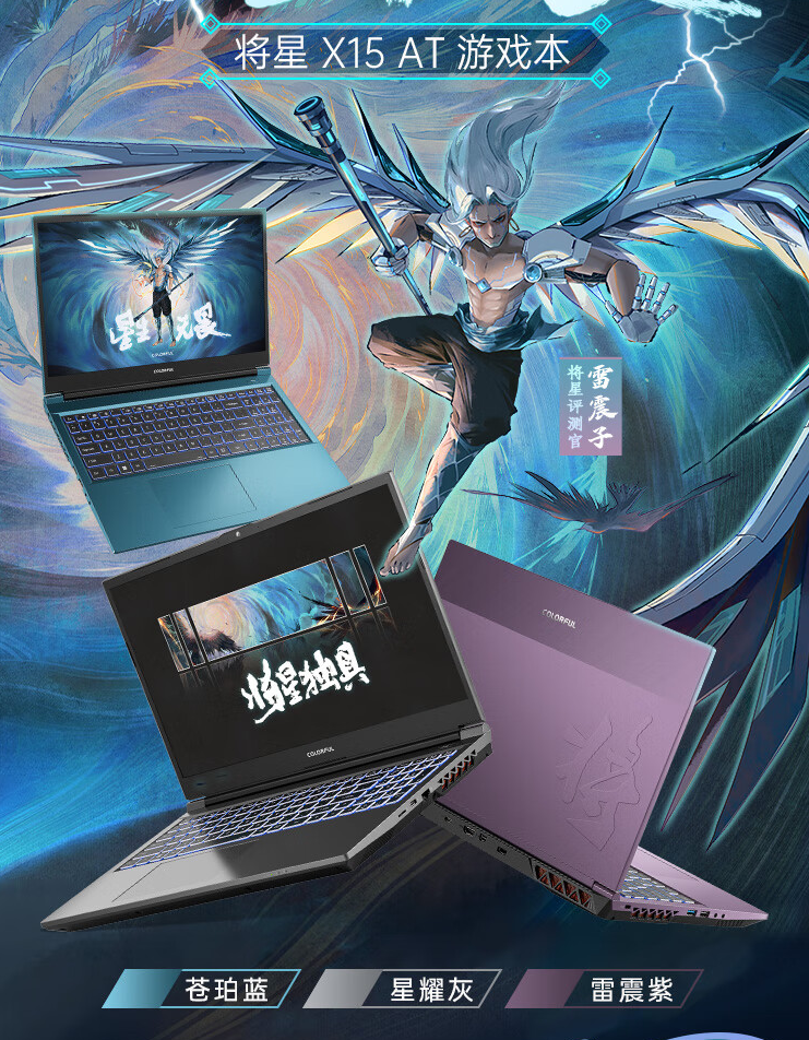 七彩虹将星X15 AT 23有苍珀蓝、星耀灰和雷震紫三种配色,我们拿到的是全新设计的雷震紫配色。