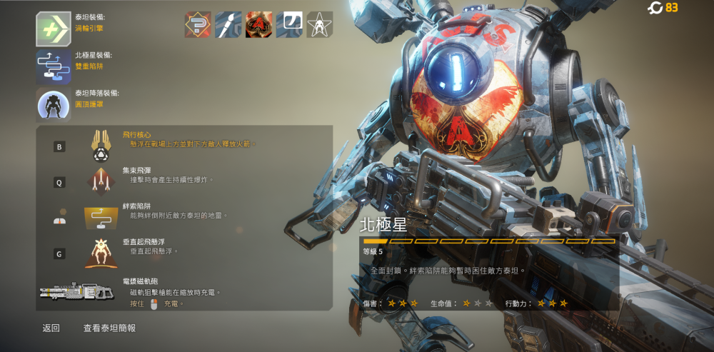 泰坦里的狙击手,一手蓄力狙能造成大量伤害,由于敌人的AI是不太聪明的,所以基本不会致命空枪,同时还有绊索可以减缓进攻的脚本,大招的伤害也还可以,不过需要注意的是身板比较脆没有防御手段,主要针对敌方泰坦。