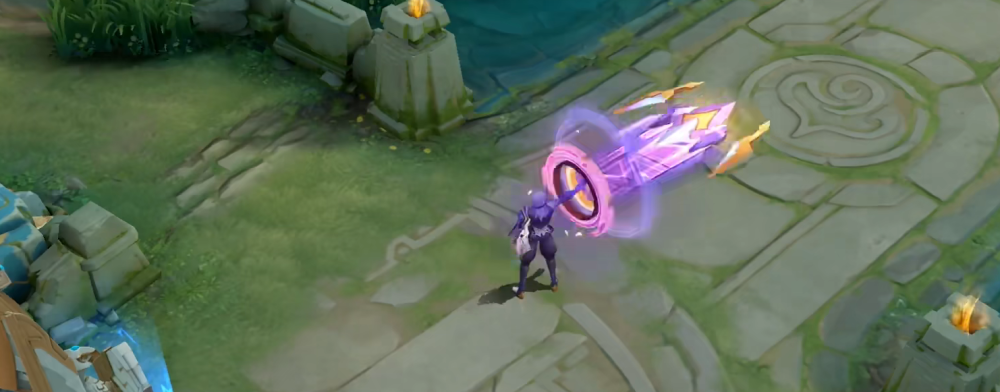 当你收回傀儡的时候,你可以发现这个傀儡,会有一个紫色的路径留下来,关键是还会留下一个电子的残影特效,可以说这款皮肤,看样子天美依然是非常用心,留下的一个护盾,也是有一个电流效果的,就凭这样的几个小细节也算是可以给一个高分的。