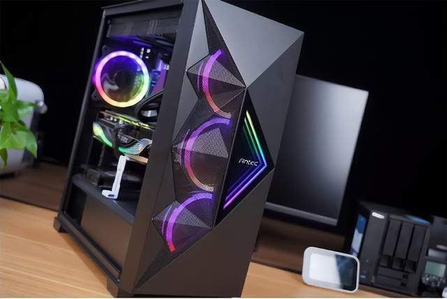 机箱是安钛克的星曜者DF800 Flux,外形设计更加的激进且有个性。其实我这款是这个型号的升级版,增加了后置ARGB风扇以及附带了一个涡轮反叶风扇。机箱前置面板三角形的凹凸设计视觉冲击力非常强,再加上一块三角形的透光优秀的钢化玻璃,当点亮后你一定会非常的喜欢。其实官方也表示。这款机箱的前面板设计灵感来源于星战,看来电影也会给设计师带来灵感。