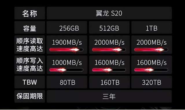 翼龙S20最大容量高达1TB,而且支持HMB (HostMemory Buffer)与SLC Caching技术,可大幅提升运算效能。游戏的加载,工作时的视频编辑,以及渲染后的导出速度都可以流畅运行!