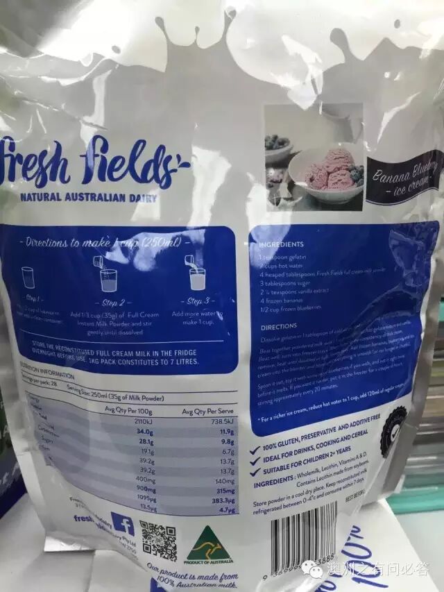 1、Fresh Fields 采用澳大利亚天然纯净的有机奶源作为原料,奶源位于澳大利亚最大的维多利亚传统产奶区高宝河谷,该地区是世界上生产天然健康食品的最合适的地方之一。