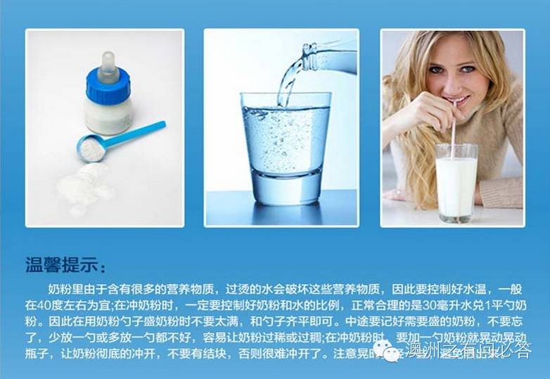 -奶粉应该把奶粉加到水里,而不是把水加到奶粉里奶粉忌日晒、潮湿,用后须排出袋内空气,扎紧袋口保存;