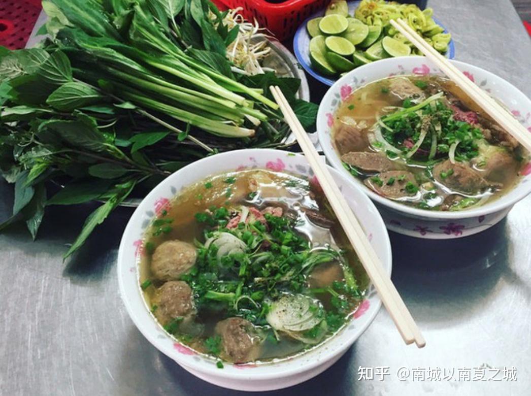 3、越南米粉喜欢搭配生菜 ( Ph? ),越南人喜欢吃米粉时候,都会配上一碟子生菜,算是香菜 (Rao th?m),包括:薄荷叶,刺芹,九层塔,鱼腥草,茴香,豆芽,生菜、青柠檬等等。其中我最喜欢挤两个青柠檬到米粉里,很鲜美。