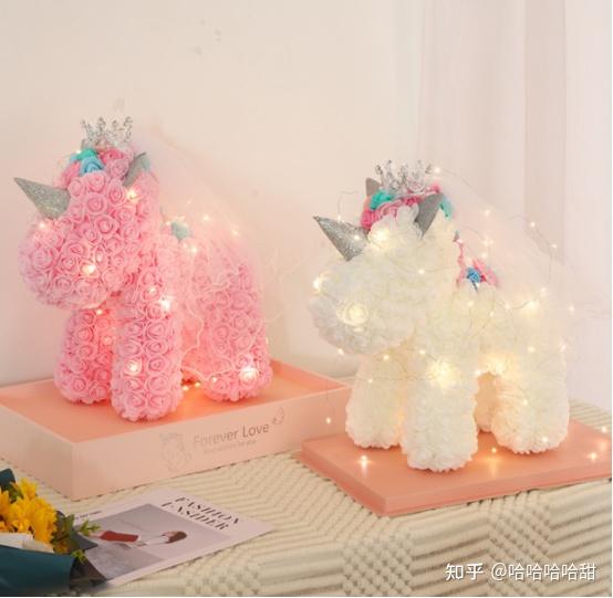 第三,可以送花朵独角兽,独角兽做为梦幻、纯洁、善良、治愈的象征,都寓意着美好的祝福。头戴皇冠款的,可以表达对方永远是你心里的美丽小公主~