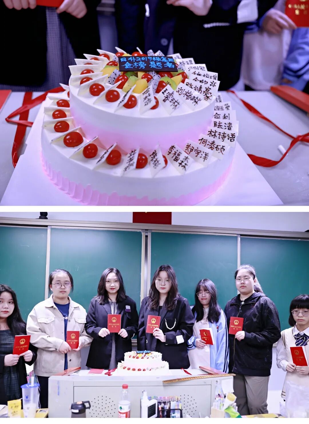 同学们分享了成人礼蛋糕,学生代表手持《宪法》合照留念