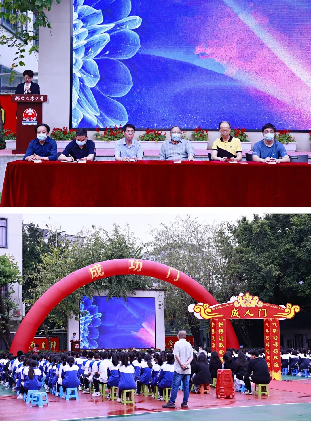 全场同学齐唱国歌拉开本次成人礼序幕,团委书记雷丹带领同学们回顾了高中三年的生活,我们即将毕业,我们这一路洒下的汗水以及收获的欢声笑语,都将成为我们前行的动力。我们从幼稚走向成熟,其中老师给予的帮助与鼓励,使我们的脚步更加铿锵。