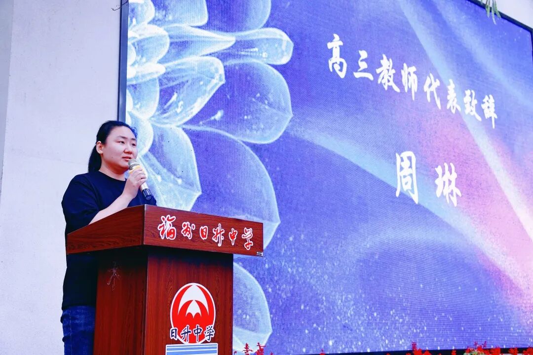 高三教师代表周琳老师上台发言,作为朝夕相伴的老师,结合自己的学习经历、生活经历、给出了他们宝贵的人生经验,以及最真挚的祝福和期盼。