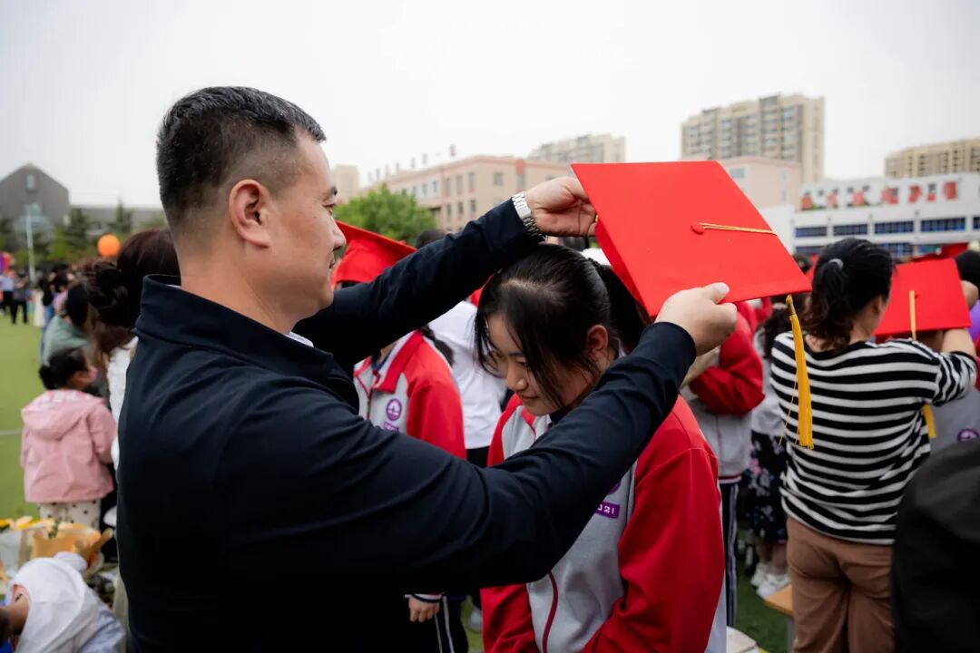 在葛方磊主任的指引下,成人礼开始了。家长们为学生正衣襟,寓意孩子们已经长大成人,要抛弃年少的幼稚,培养优秀的品德;家长为学生加冠带,理流苏,寓意着孩子们由家中孺子转变为肩负责任的成人;同学们向父母敬献“感恩书”并拥抱致意,感谢父母的养育之恩,家长们将为孩子准备的礼物送给孩子,祝贺他们长大成人;家长将《中华人民共和国宪法》转交到学生们手中,冠礼已成,吾辈当以“修身立志”为本,“民族复兴”为任,不负双亲,不辱家国,宪法为证,敬承铭记!过程中许多家长热泪盈眶,为之动容,场面温馨而感人,当他们深深地拥抱在一起,已经把两代人的心紧紧地联系起来,这就是人世间无以伦比的情感!