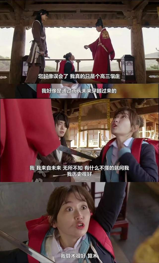 然后女主就在古代讲起了勾股定理,因为是高考生嘛,这时候的知识那可真是这辈子知道的最多的时候了。于是女主又做起了男主的小老师,男主和女主约定只要下雨,他就会放她走。