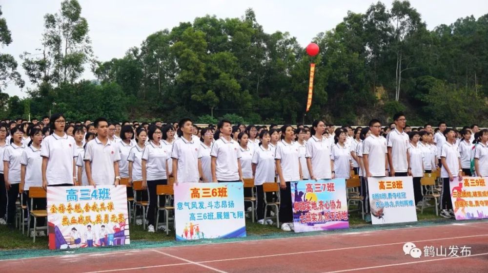鹤山市文明办、团市委、市教育局、纪元中学有关负责人、高三级全体教师和部分家长代表参加了此次仪式,一起见证庄重的时刻。