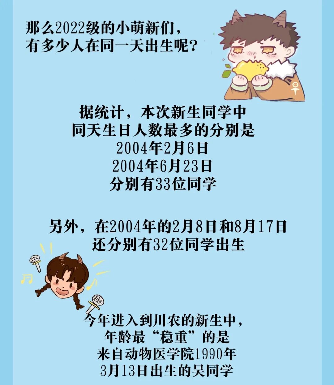2022级新生在2004年2月10日这天出生的人数最多,为14人。还有,11月11日,和攀大同一天过生日的新生,有15个哟!(大攀建议:一起庆生更热闹哦~)