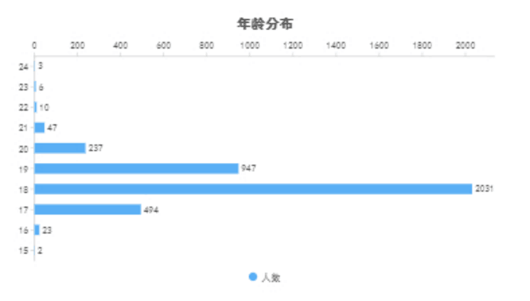 2022年新生年龄分布,其中处于18岁的新生居多,最小年龄为15岁。