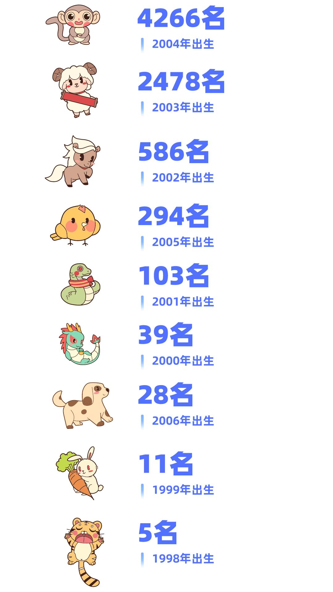 大部分小22都出生在2003年和2004年 ,所以是属羊和属猴的小朋友居多哦~