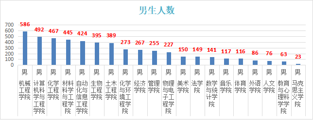 ●男生最多的是机械工程学院586人