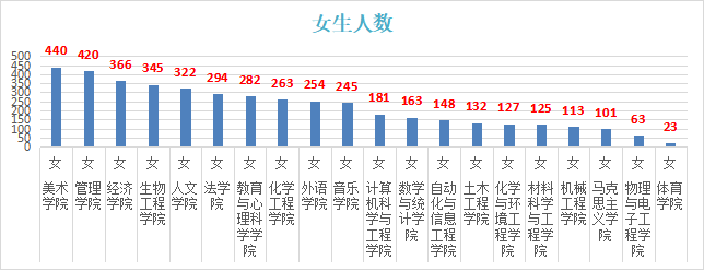 ●女生最多的是美术学院440人
