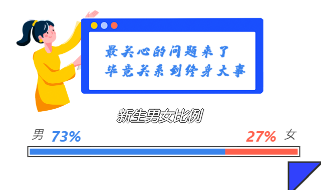 男女比例一直是TOP1的热门话题!今年的新生里,男生4599名,女生3217名,整体比例:1.43:1 。