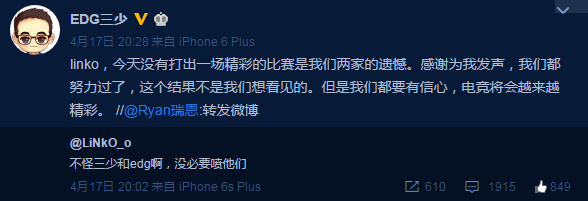 linko是QG的领队,人家也说了,就不赖三少和EDG。退一万步说,真的是三少举报什么的,好比你去杀人,你违法了还不让别人报警抓你?年轻人,你这种思想很危险啊。